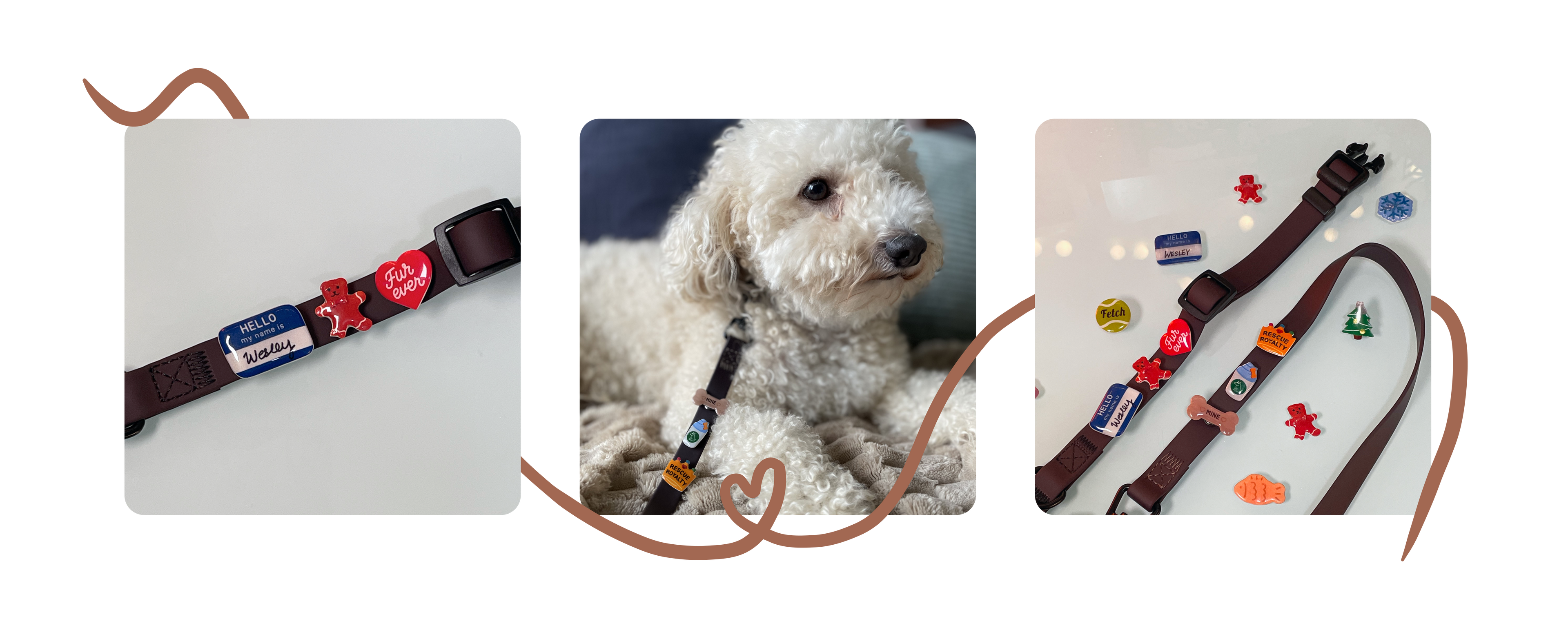 Handmade accessories for collars and leashes that celebrate every kind of dog.